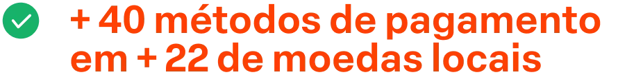 Conversão automática de moeda e de formas de pagamento no próprio checkout que aumenta em até 70% as suas chances de vender.