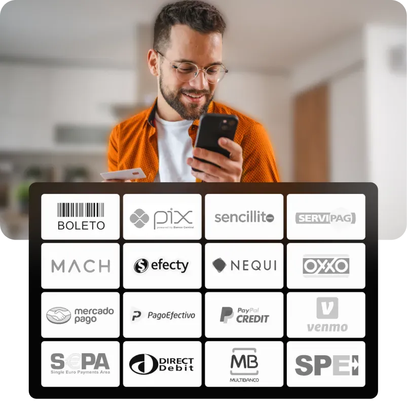 Venda com um processo de pagamento rápido, transparente e feito para converter, inclusive para clientes de fora do Brasil.
