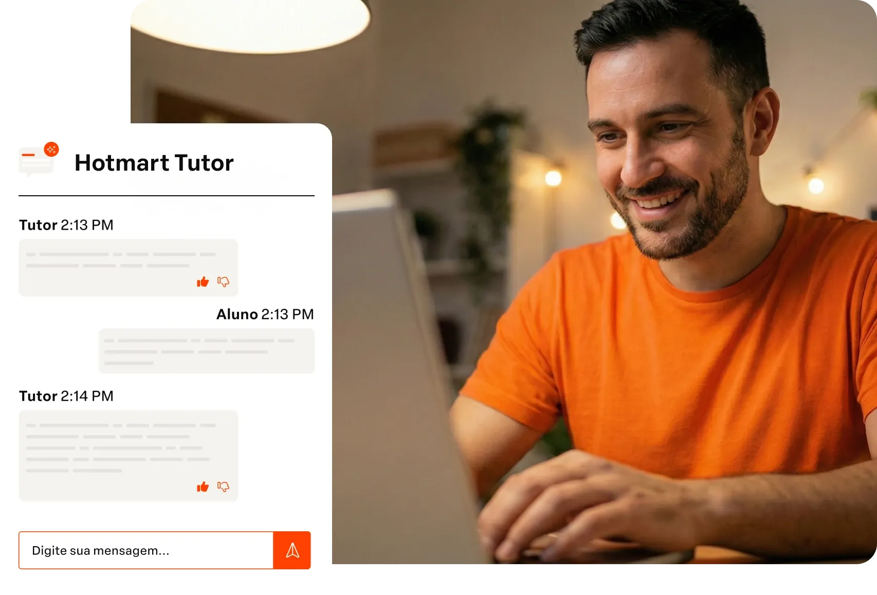 Assistente inteligente que usa o conteúdo das suas aulas no Hotmart Player para responder às dúvidas dos seus alunos, como se fosse você.